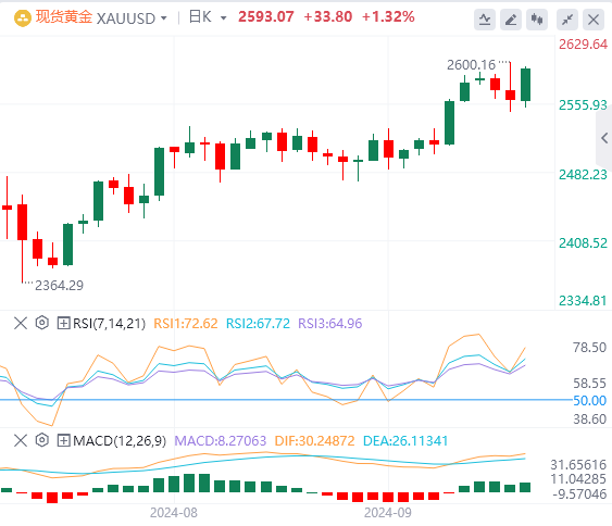 在美联储周三继续降息50个基点后,黄金触及2,600美元的历史新高,尽管黄金未能维持新高。几位分析师解释说,由于美联储的宽松周期在事件发生前已经被金融市场消化,因此缺乏波动性(金融资产价格在宣布后仅发生小幅变化)。