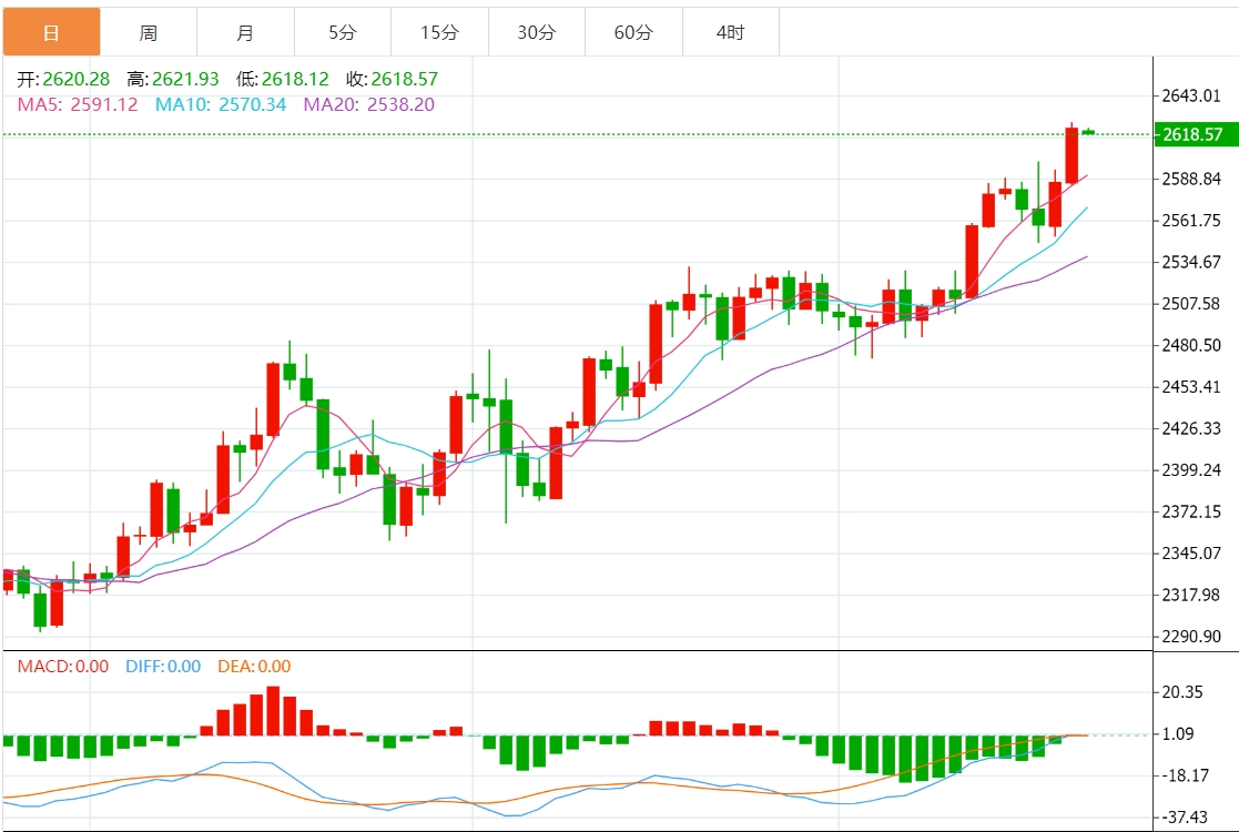 黄金接近历史高点 2,625 美元附近的主要阻力区域。决定性地突破该水平可能会为 2,700 美元的心理水平铺平道路。