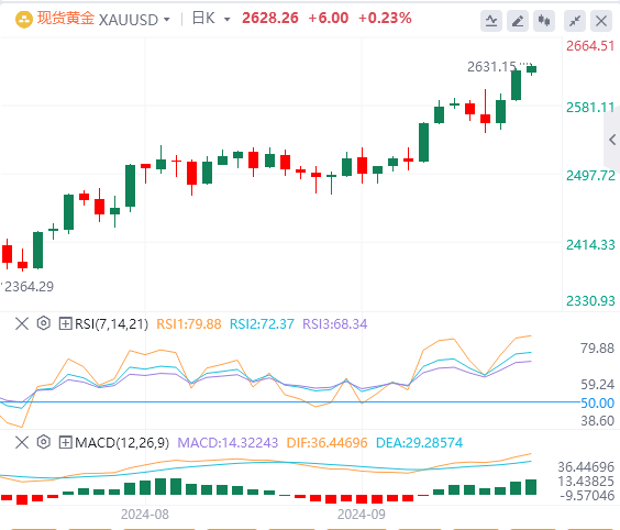 黄金接近历史高点2625美元附近的主要阻力区域。决定性地突破该水平可能会为2700美元的心理水平铺平道路。