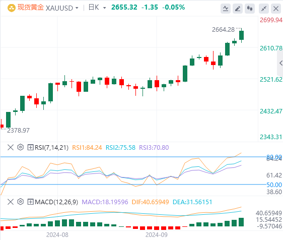金价近期可能在2,655美元附近进行盘整。突破2,659美元可能会触发看涨势头,而跌破2,652美元则有可能进一步下行,保持谨慎的市场基调。