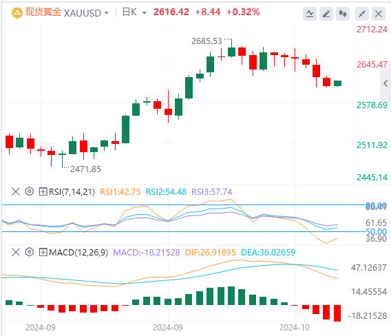 尽管美元走强,但金价在2,605美元上方表现出弹性。突破2,630美元可能会带来进一步上涨,而跌破2,605美元则有可能带来下行势头。