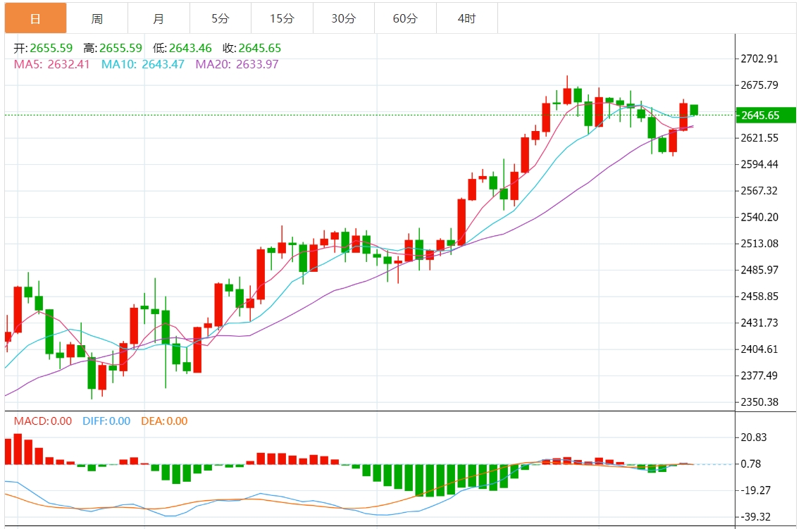 从技术面来看,黄金在经过早些时候的回调后,仍然维持在关键支撑区域之上。相对强弱指数(RSI)显示,金价在经过技术修正后依然看涨。目前的短期阻力位在2675美元/盎司,突破这一水平将打开进一步上行空间,目标指向2700-2710美元/盎司的关键整数关口。