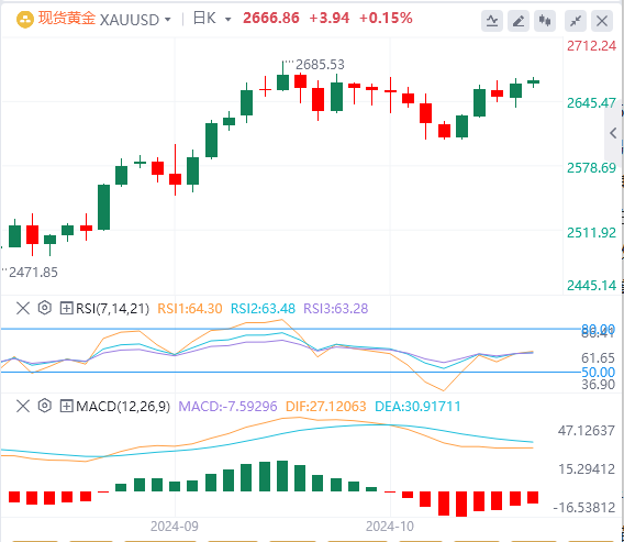 随着买方重新控制金价,金价在关键的21日均线(SMA)支撑位(现为2640美元)上方延续升势。14日相对强弱指数(RSI)北指位于中线上方,暗示仍有更多涨势。 日图收盘时,黄金价格需要突破2670美元的关键阻力上方,才能站上2686美元的纪录高位。再往上,将考验2700美元的整数水平。