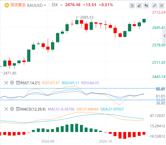 随着地缘政治紧张局势持续存在,黄金价格可能会继续上涨。然而,阻力位2676.15美元可能会限制收益,而跌破2660美元则有潜在的抛售风险。