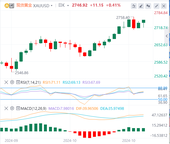 上行方面,在2770美元(上升通道上限)和2800美元(整数水平)之前,似乎在2750美元形成了中间阻力。