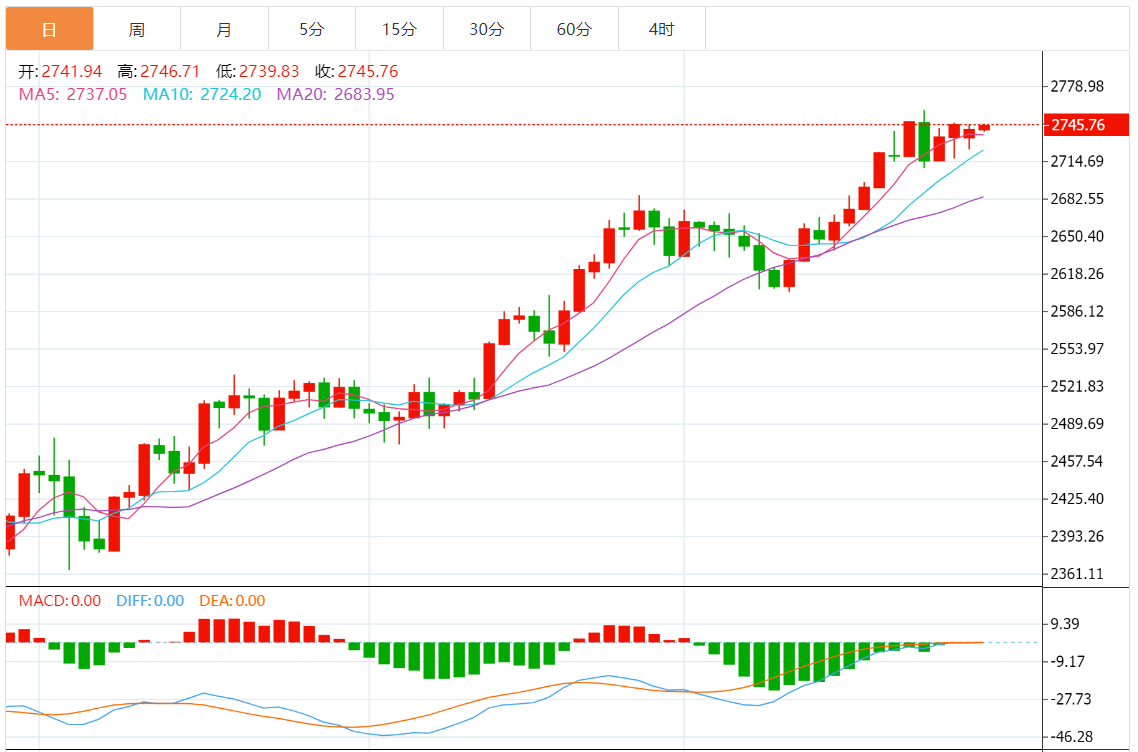 技术上,金价周二恢复反弹,如果买家推动金价升至2775美元/盎司以上,金价将测试2800美元/盎司。一旦突破后者,金价目标将是心理关口2850美元/盎司和2900美元/盎司。另一方面,如果卖家进入并将金价推低至2750美元/盎司以下,下一个支撑位将是2700美元/盎司。接下来的支撑位是9月26日高点2685美元/盎司,随后是50日简单移动平均线(SMA)2603美元/盎司。势头表明,相对强弱指数(RSI)仍然看涨,并突破了上一个峰值,这意味着买家正在积聚动力。
