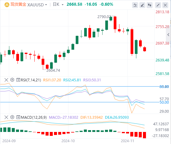 黄金今天交易价格下跌至2672.70美元,下跌0.44%,因为贵金属在2668.55美元的枢轴点附近面临压力。如果金价保持在该水平上方,我们可能会看到看涨反弹,直接阻力位在2683.83美元,进一步障碍在2696.64美元和2709.14美元。