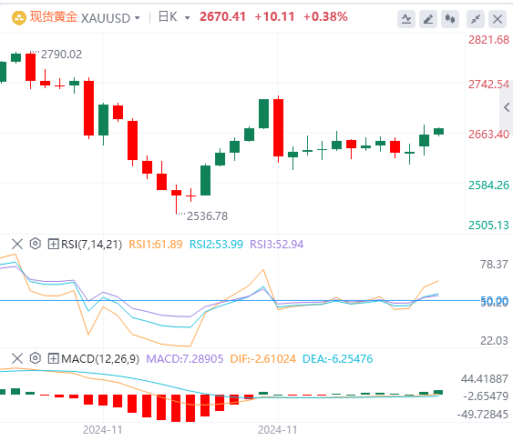 日线图显示,金价的趋势已经转向有利,14日相对强弱指数(RSI)突破中线向上。金价目前正试图向北突破近期区间,与关键的50日简单移动平均线(SMA)2668美元作斗争。日线收盘价高于后者对于提供额外动力以支持金价的持续复苏至关重要。下一个相关阻力位在2700美元整数关口和11月25日高点2721美元。