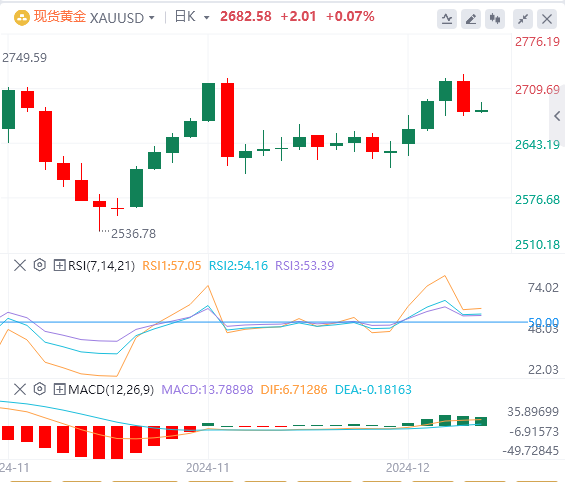 价格保持在枢轴点2675.71美元和50EMA2685.54美元上方,表明短期强势。直接阻力位在2701.01美元,下一个障碍在2707.20美元。