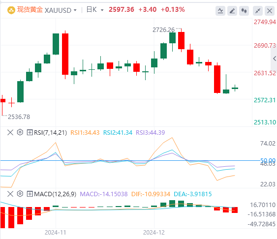 避险情绪导致美国债券收益率小幅回调,从而抑制了近期美元上涨至两年顶部的势头,并成为支持该大宗商品的另一个因素。尽管如此,美联储(Fed)发出的将在2025年放缓降息步伐的鹰派信号应会成为美国债券收益率和美元的有利因素,进而限制无收益率黄金价格进一步上涨。