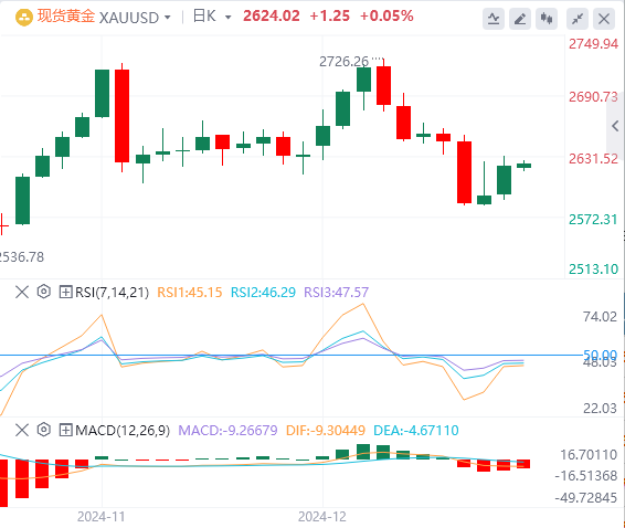 尽管此前美联储暗示将在2025年放慢降息步伐,黄金本周周线收跌,但金价仍守住了2600美元/盎司左右的关键支撑位。在2025年最后一个完整的交易周里,由于投资者准备迎接美联储宣布鹰派降息,金价走势艰难。不出所料,美联储降息25个基点;然而,最新的经济预测显示,点阵图暗示明年只有两次降息,利率达到4%。而今年9月,美联储曾预测在新的一年里将降息四次。分析师指出,在这种环境下,黄金在缩短的假日交易季仍可能面临挑战。