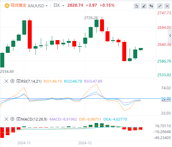 金价的短期技术前景基本保持不变,因为下行偏向仍然存在,14天相对强弱指数(RSI)保持在50水平以下。在日线收盘基础上重新站上21日简单移动平均线(SMA)2645美元对于扭转跌势至关重要。站稳该水平将呼吁测试50日均线2669美元。进一步上行,2700美元将挑战看跌承诺。