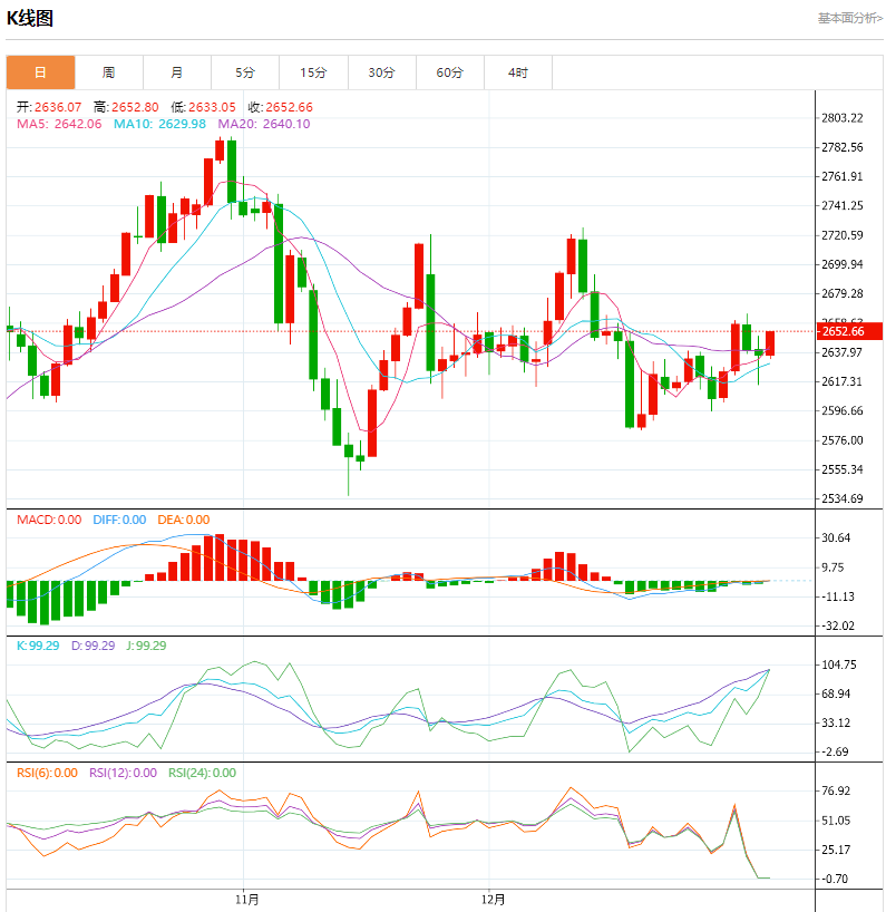 日线图显示,14日相对强弱指数(RSI)在50的水平上交易乏力,使黄金价格在狭窄的区间内波动。金价守住了21日简单移动平均线的2636美元/盎司,此前金价在周一收盘时未能维持在该水准之上。