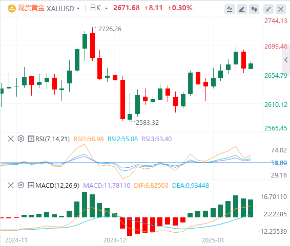 50天EMA为2,659.28美元,加强了短期看涨情绪,而200天EMA为2,648.44美元,证实了强劲的长期上升趋势。持续突破2,696.66美元可能预示着进一步的上行潜力,而跌破2,658.87美元则可能引发更深的修正。