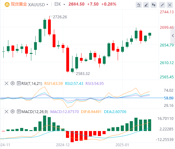 关键枢轴点2658.88美元是市场方向的关键阈值。持续突破该水平可能会触发看涨势头,目标立即阻力位在2696.66美元,更高的水平在2720.76美元。