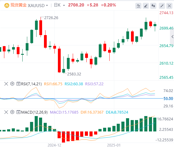 向上看,在考虑进一步上行之前,需要收复2708美元的水平。再往上看,下一个要看的水平是2721美元,这是11月和12月的双顶。如果金价突破该水平,则2790美元的历史高点是关键的上行障碍。
