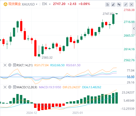 黄金周二上涨超过1%,触及两个月高点2745美元,因在美国总统唐纳德·特朗普就关税发表言论后,寻求避险的投资者购买了这种无收益金属。美元最初上涨,但正如美元指数所描述的那样,美元转为负值,这是金价的利好因素。