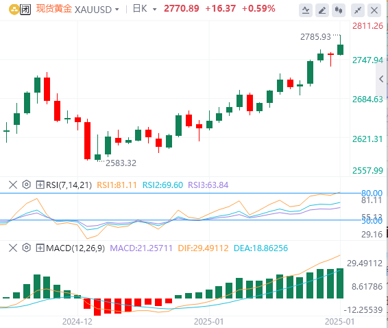 周二黄金上涨超过1%,在周三缺乏高层次宏观经济数据发布的情况下继续推高,触及自10月底以来的最高水平,超过2760美元。