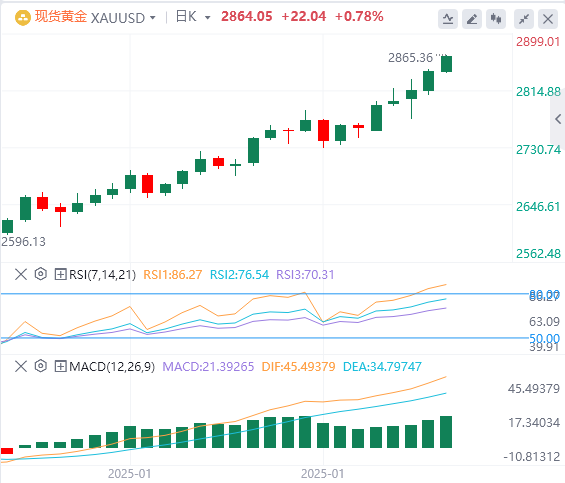 然而,特朗普总统推迟对加拿大和墨西哥征收关税的决定略微改善了市场情绪。这可能会限制黄金的即时上行空间,尤其是因为技术指标表明黄金在短期内处于超买状态。