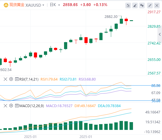 黄金多头“狂欢”后有所冷静,特朗普上任后首 个非农即将来袭,截至目前,黄金报价2859.65。