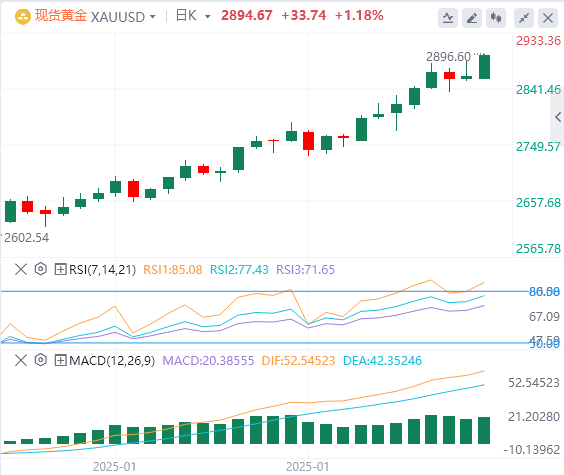 市场参与者担心,这些关税可能会加剧经济不确定性并导致更高的通胀,这在历史上支持黄金作为对冲价格上涨的工具。然而,由于周五公布的强劲就业数据提振了强势美元,黄金的上涨势头可能面临阻力。