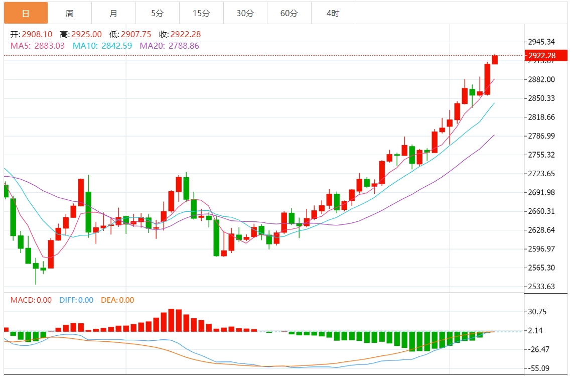 技术上,由于相对强弱指数(RSI)处于超买状态,势头仍然看涨,但只要它保持在最极端的80以下,多头仍可能推高价格。金价下一个阻力位将是心理位2950美元/盎司,一旦攻克这一水平,金价将瞄准3000美元/盎司。