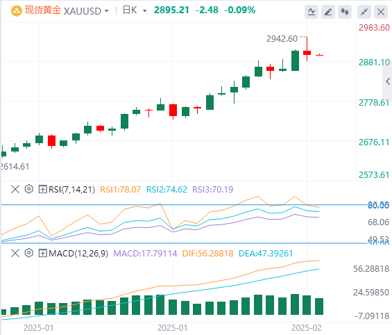 现货黄金在创下2942.60的历史高点后遭投资者获利了结,日内跳水逾40美元,截至目前,黄金报价2895.21。