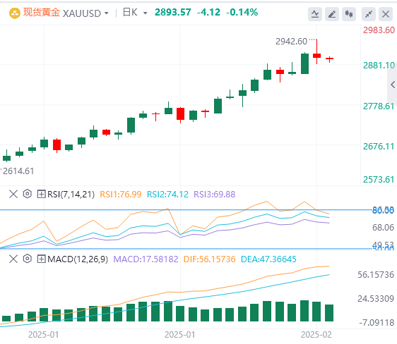 他的鹰派立场,加上强劲的美国就业数据,使美元走强,降低了黄金作为非收益资产的吸引力。尽管黄金下跌,但对贸易紧张局势加剧和全球经济不确定性的担忧可能会限制更深的损失。