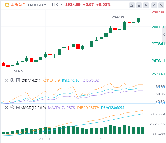 黄金的第一个上行障碍出现在2,942美元至2,943美元区域,代表周二触及的历史峰值。扩大涨幅可能会反弹至2,955美元,即布林带的上边界。决定性地突破该水平可能会为3,000美元的心理水平铺平道路。