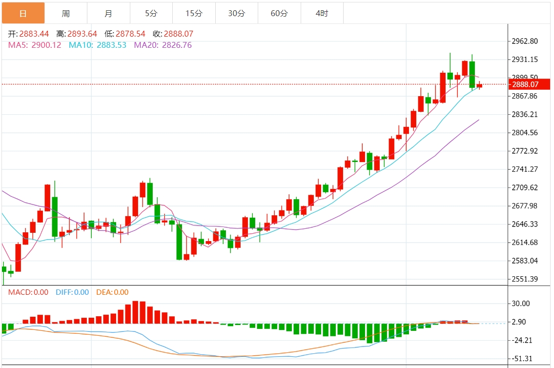 黄金近期仍技术性超买,日线图上的相对强弱指数(RSI)维持在80附近。此外,金价自去年12月中旬以来的上行通道上限在2950美元/盎司。随着金价跌破2900美元/盎司支撑,若黄金出现更多技术性调整,金价下一个支撑在2850美元/盎司(上升通道的下限),然后是2820美元/盎司(20日简单移动平均线)。