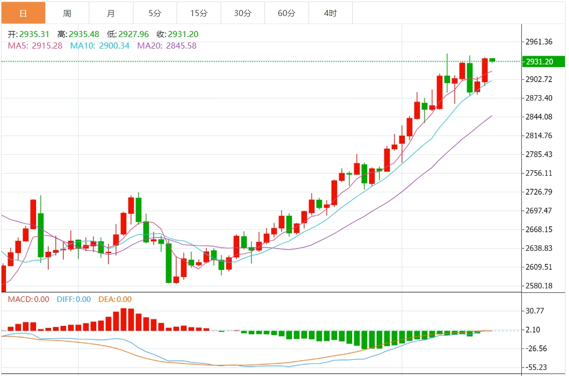 技术上,黄金价格仍呈上涨趋势,买家将目光投向突破历史高点2942美元/盎司。金价进一步的关键阻力位于2950美元/盎司和3000美元/盎司关口。如果这些水平被清除,金价可能达到高盛预计的目标价位3100美元/盎司。