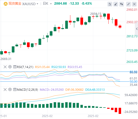 从技术角度来看,最近的下跌现已将金价拖至12月至2月反弹的23.6%斐波那契回撤位以下。此外,日线图上的振荡指标刚刚开始获得负牵引力,并支持本周从历史峰值的修正性回调延续的前景。一些低于2856-2855美元水平区的后续抛售将重申负面偏见,并将XAU/USD货币对拖至2834美元区域附近的下一个相关支撑位,然后达到38.2%斐波那契。水平,在2815-2810美元区域附近。紧随其后的是2800美元大关,如果果断突破该关口,将表明该商品已经见顶,并为更深的损失铺平了道路。