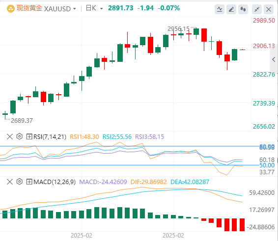 金价在连续两天的下跌后恢复上涨趋势,推动黄金跌破2900美元。尽管如此,买家在2830美元关口附近进军,将现货价格推高至2850美元以上,这加剧了向2893美元的反弹。如果买家的日收盘价高于2900美元,金价可能会挑战年初至今(YTD)的峰值2954美元。