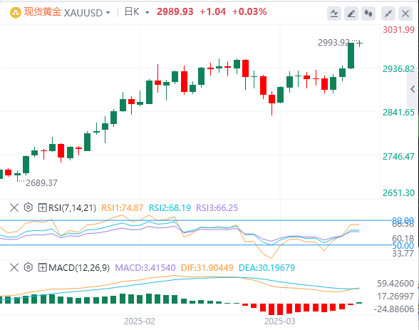 多头将目光投向2993.91美元的直接阻力位,突破可能会将价格推高至3,013.94美元。