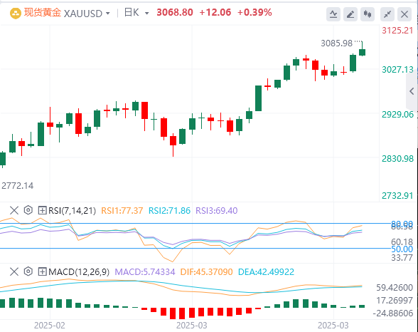 黄金仍稳居其枢轴点3,059.03美元和50EMA3,036.48美元上方,这两者都提供了坚实的技术支撑。