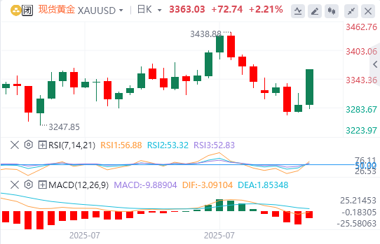 金价周五上涨近2%,创下一周新高,美国非农就业数据弱于预期,提振美联储降息预期,且新的关税公告刺激了避险需求。现货金上涨1.8%,至每盎司3347.66美元,早些时候上涨2%,触及7月25日以来的最高水平。本周上涨0.4%。美国期金GCcv1结算价上涨1.5%,报3399.8美元。