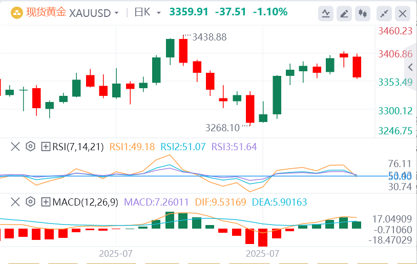如果黄金攀升至3400美元以上,下一个感兴趣的区域将是6月16日的峰值3452美元,然后是3500美元的历史高点。相反,如果黄金收盘价低于3350美元,金价可能会滑向100美元的3283日移动平均线。