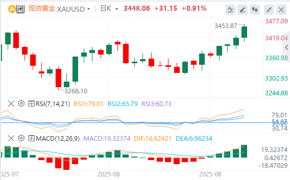 现货金上涨0.9%,报每盎司3447.09美元。黄金在8月份已经上涨了4.8%。12月交割的美国期金GCcv1上涨1.2%,报3515.70美元。美元DXY持稳,但月度跌幅为2.2%。美元走低使得海外买家购买黄金的成本降低。