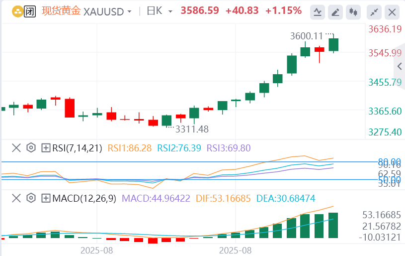 周二早盘,避险资金主导了金融市场的行动,黄金延续了其上涨势头,突破3500美元。由于对英国国债财政健康的担忧加剧,导致全球债券市场出现剧烈抛售,迫使投资者寻求避风港。