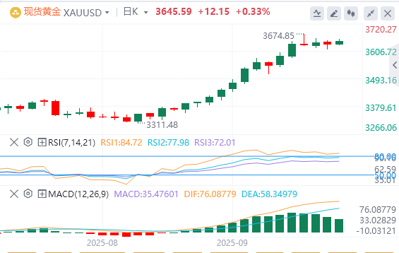 每日相对强弱指数(RSI)仍处于超买区域,需要黄金/美元多头保持谨慎,或为任何进一步升值走势做好准备。也就是说,在3657-3658美元区域之外的一些后续买盘应该会让金价重新测试历史高点,即周二触及的3675美元区域附近。这种势头可能会进一步延续,并使该商品能够突破3700美元的整数大关。