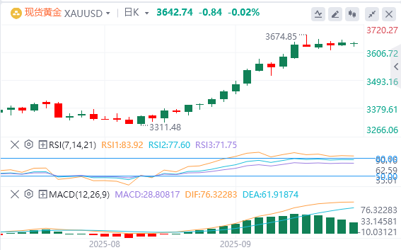 从技术角度来看,每日相对强弱指数(RSI)仍处于超买区域,并支持在下一轮上涨之前延续区间价格走势的理由。也就是说,突破3657-3658美元直接障碍的势头应该会让金价重新测试上周二触及的3675美元区域附近的历史高点,并进一步攀升至征服3700美元整数关口。