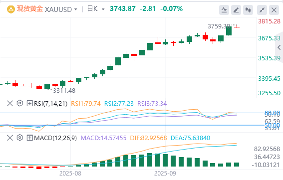 现货黄金日内大涨超60美元,并将历史新高刷新至3740美元上方,截至目前,黄金报价3743.87。