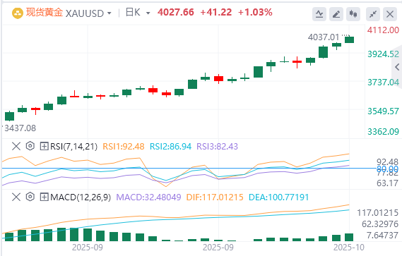 周三持续突破4,000美元大关,证实了自9月中旬以来的上升通道的新突破。此外,到目前为止,金价在短期图表上已经克服了超买状况。这反过来又支持了过去两个月左右见证的近期成熟上升趋势的延续。