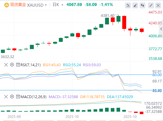 尽管最近出现调整,但更广泛的环境仍然为黄金提供了潜在支撑。美国政府关门已进入第24天,继续削弱信心,而华盛顿和北京之间持续的贸易紧张局势维持了对避险资产的需求。