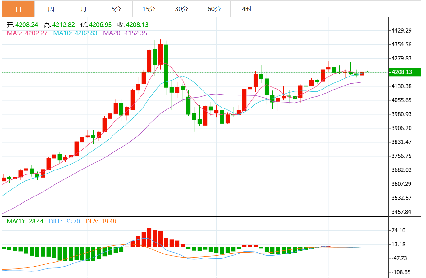 技术上,黄金多头的下一个上行目标是收盘价突破4433.00美元/盎司的合约高点(即历史高点)这一强劲阻力位。空头的近期下行目标是将期货价格推至4100.00美元/盎司的强劲技术支撑位下方。第一阻力位在4250.00美元/盎司,其次是4285.00美元/盎司;第一支撑位为隔夜低点4197.80美元/盎司,其次是4150.00美元/盎司。