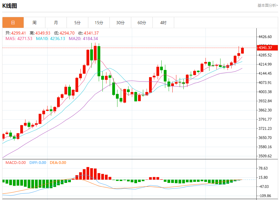 第一支撑为4303-4312美元,对应日内枢轴点4303.73美元与4小时斐波那契0.236回撤位,早盘与午后两次回调至此均快速反弹,印证买盘承接力。该点位也是短期均线的聚合区,5小时与10小时均线在此形成金叉支撑,跌破则可能打开下探空间。
