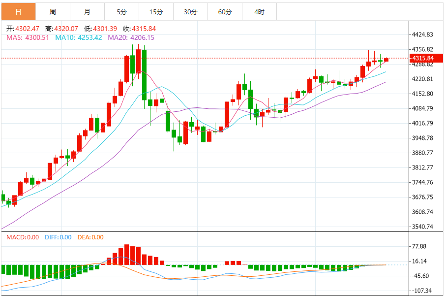 周三(12月17日),现货黄金目前位于4316.20美元/盎司附近,涨幅为0.33%。
