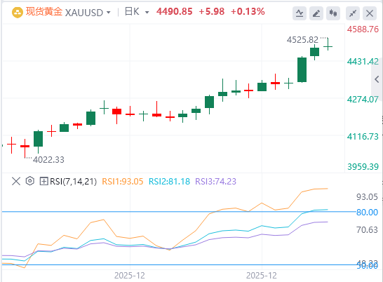 美委石油运输冲突、俄乌战争升级及潜在以伊冲突风险,持续推升避险情绪。年末流动性稀缺虽限制交易者新押注意愿,但基本面背景仍指向黄金"阻力最小路径向上",任何显着回调均被视为买入机会。