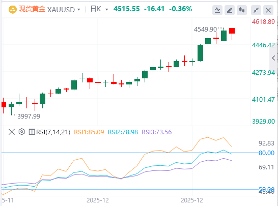 下跌方面,12月23日的最低价4430美元是值得关注的初步支撑。若跌破该水平,将打开通往12月22日最低4338美元和12月17日4300美元低点的大门。