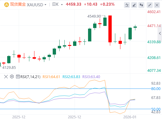 从技术角度看,隔夜突破100小时简单移动平均线(SMA)及随后突破4445-4450美元拥堵区,可能被视为XAU/USD多头的关键触发点。移动平均收敛背离(MACD)直方图在1小时图表上转为正值并略高数英寸,显示MACD线略高于信号线附近的零点,显示动能有所改善。